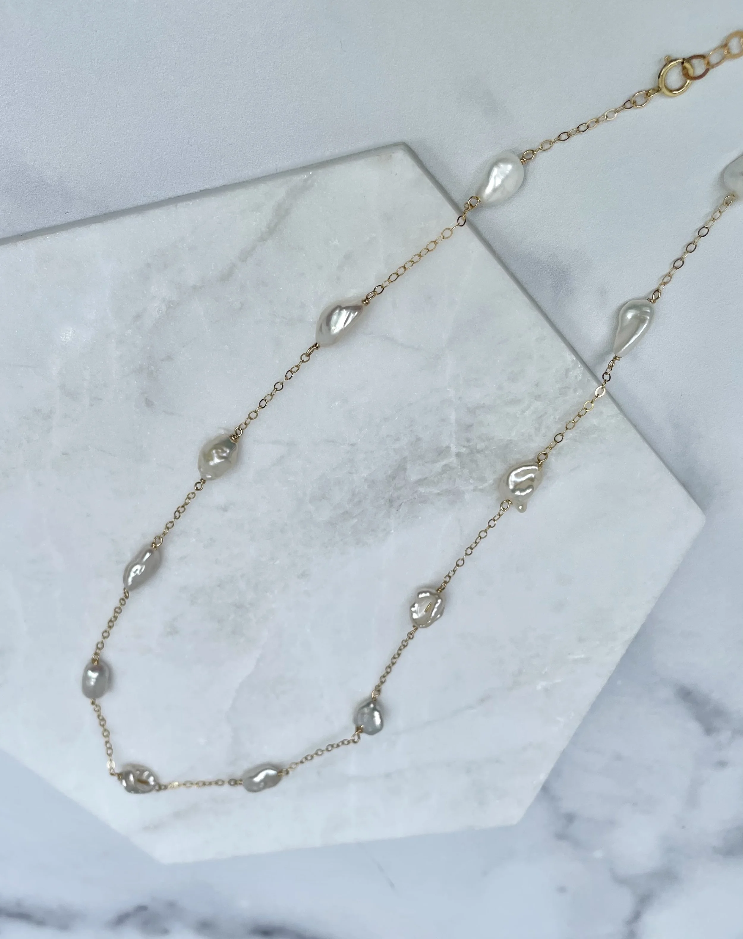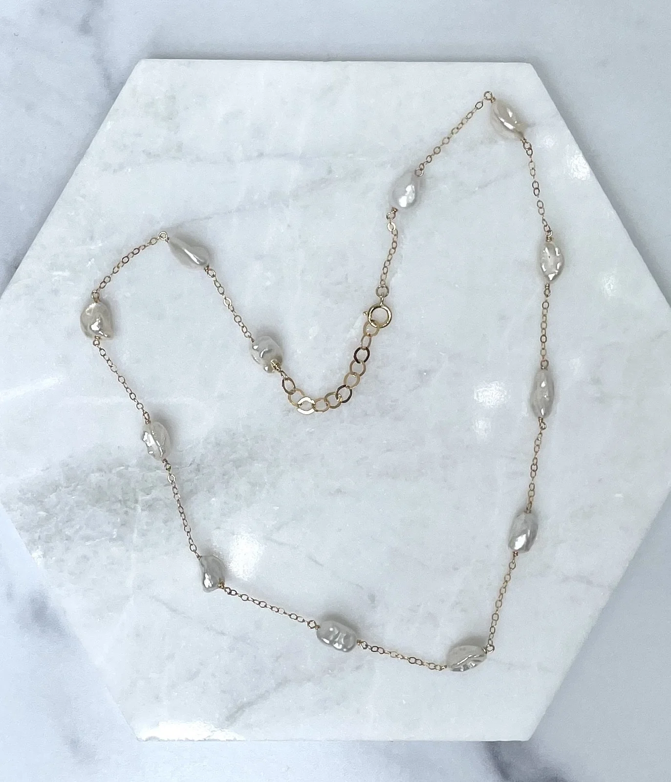Categories: All Silver Bridal Rainbow Pearls Mixed Metals Shop All | Silver | Bridal | Rainbow | Pearls | Mixed Metals | White rice pearl and gold filled threader earrings Add To Cart Added! White keshi pearl and gold filled earrings Add To Cart Added! Single gold ball bead and sterling silver chain necklace Add To Cart Added! Dainty 5-bead gold ball and sterling silver chain necklace Add To Cart Added! Rainbow Drop Necklace Add To Cart Added! White keshi pearl and gold filled necklace Add To Cart Added! Sterling silver chain and ball necklace Add To Cart Added! Dainty 7-bead gold ball and sterling silver chain necklace Add To Cart Added!